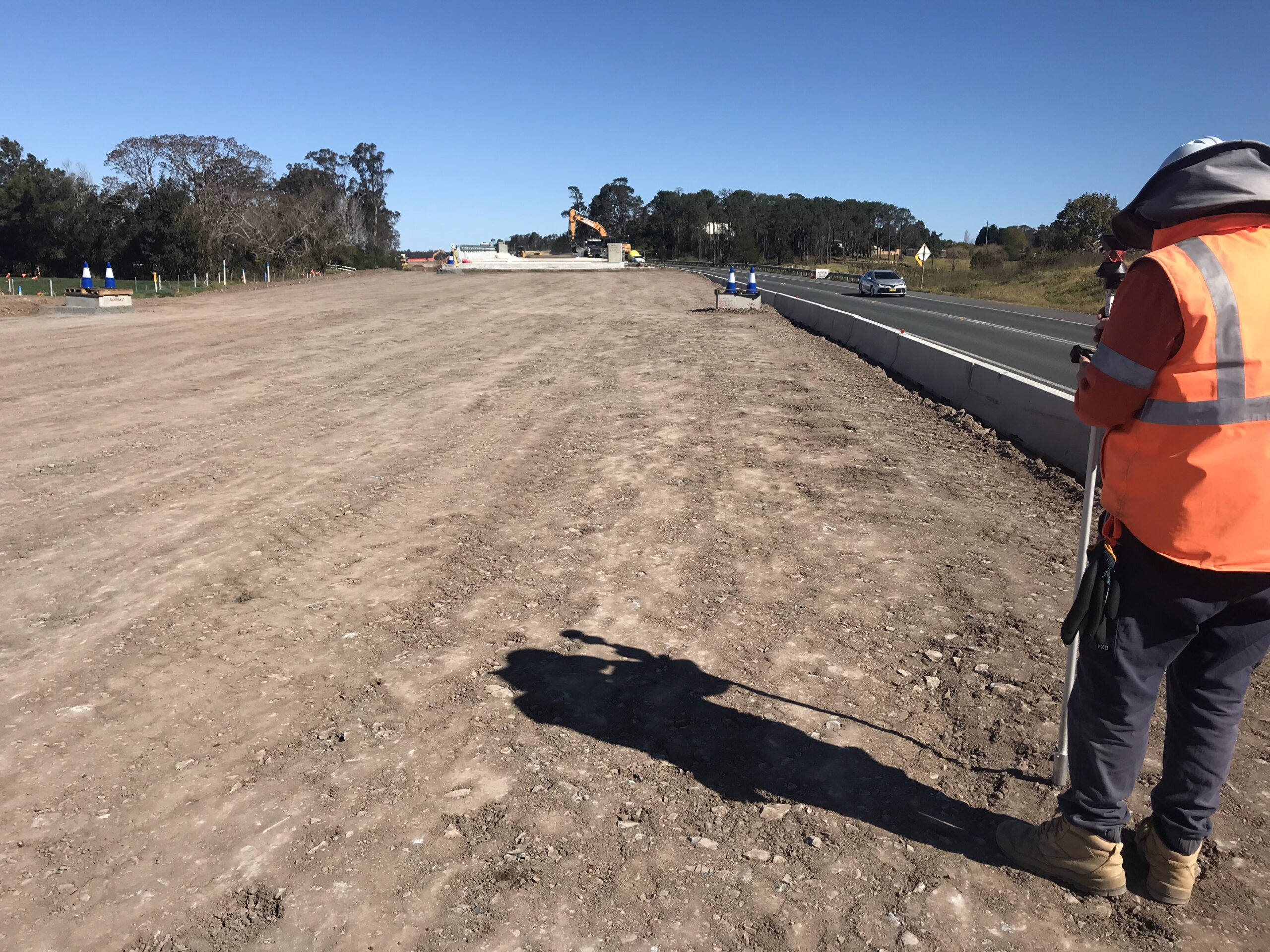 Road & Civil Surveys provided embedded survey support across the civil construction program, with 3–4 surveyors deployed across multiple work fronts along the 10.5-kilometre corridor. Scope included earthworks set-out and as-built surveys, pavement and road set-out, and drainage and utilities infrastructure. RCS established and maintained the project control network and provided data calculations and EOM reporting. Night shift and weekend work supported live traffic interfaces where the new alignment tied into the existing Princes Highway.