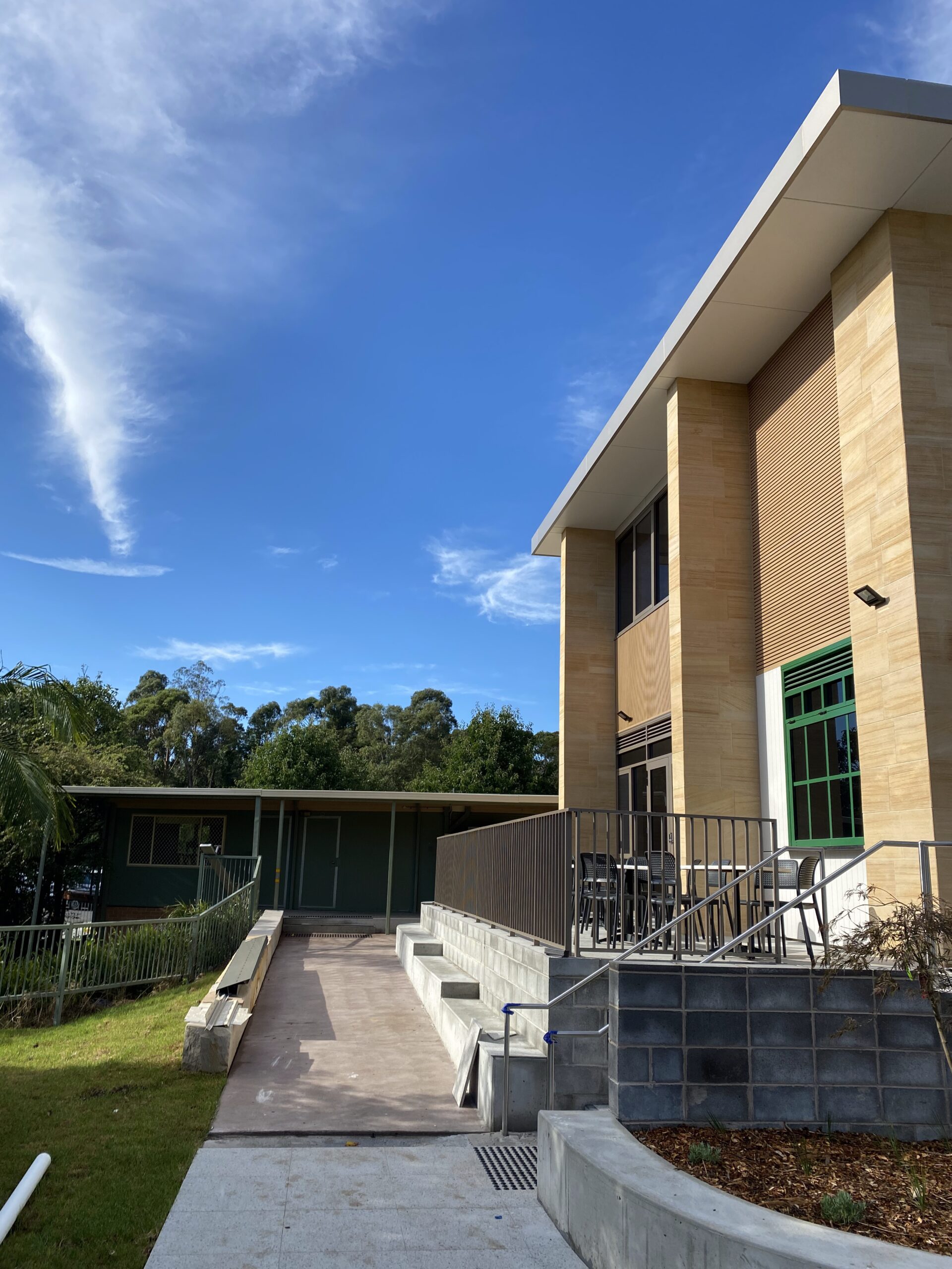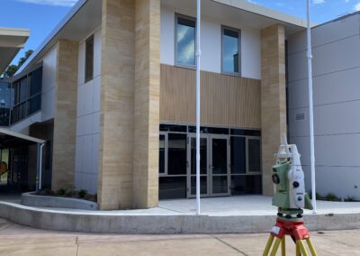 The Vision Centre is an architecturally designed two-storey learning facility featuring modern collaborative learning spaces, a boardroom, café and flexible teaching areas across both levels. The second floor connects directly to the existing campus, integrating the new building into the broader school environment. The project was delivered within a live school campus, requiring careful coordination of all construction and survey activities around daily school operations, student movements and term schedules.