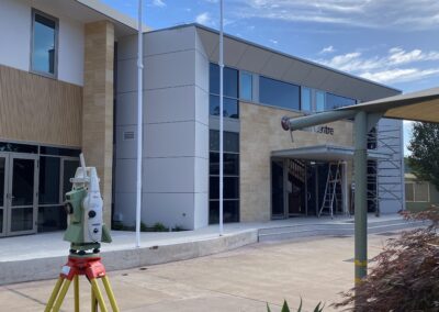 Road & Civil Surveys provided construction set-out for the building footprint, structural grid, floor levels and key architectural elements across both storeys, with precise spatial control required to ensure correct alignment with the existing campus buildings. Progressive as-built surveys supported quality assurance at key construction stages, and 3D laser scanning captured a detailed digital record of the completed facility for as-built documentation and future campus planning.
