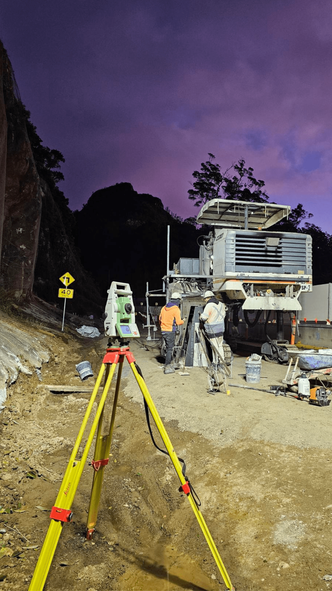 Cunninghams Gap presented a unique survey challenge — steep, complex terrain on a mountain pass within a national park, with construction activity above and below the road simultaneously. Accurate survey in these conditions demanded careful control network design and field methodology adapted to the site’s topography. 3D scanning captured the irregular rockface geometry that conventional survey methods would struggle to define with sufficient detail, supporting the design and verification of rockfall protection systems and retaining walls. UAV flyovers provided efficient progress documentation across areas that were difficult or unsafe to access on foot. Flexible deployment to a remote regional Queensland location — well outside the typical south-east Queensland corridor — demonstrated RCS’s willingness and ability to mobilise where the work demands. Cunninghams Gap was RCS’s first project with McIlwain Civil Engineering, expanding the client base in Queensland and reinforcing the company’s growing regional capability.