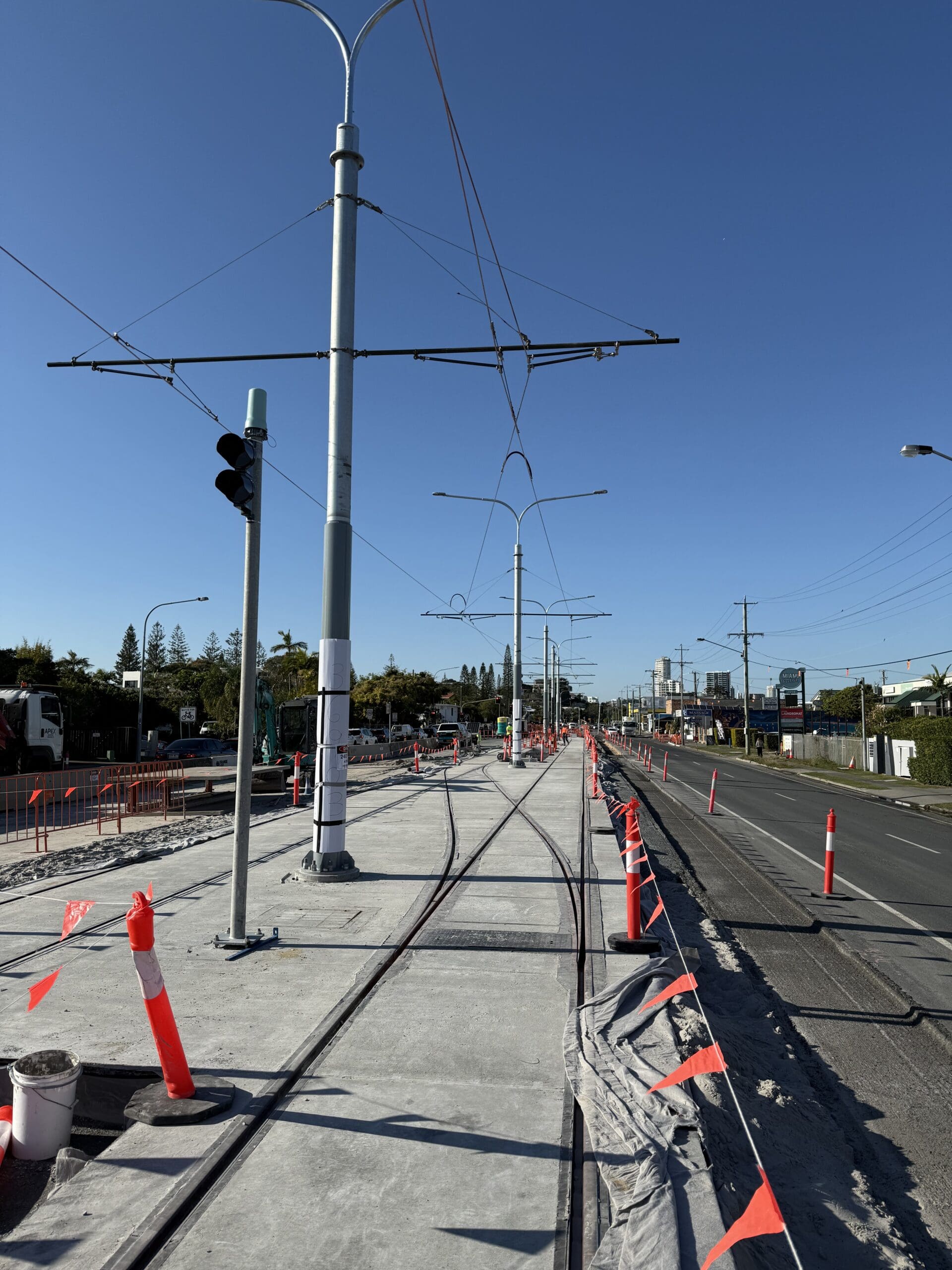 Road & Civil Surveys is providing specialist rail surveying support for Gold Coast Light Rail Stage 3 — a $1.2 billion, 6.7-kilometre extension of the Gold Coast light rail network from Broadbeach South to Burleigh Heads. Delivered by John Holland for GoldlinQ and the Queensland Government, the project includes 8 new stations, 5 additional light rail vehicles, and construction within the central reservation of the Gold Coast Highway through one of Queensland’s busiest coastal corridors.
