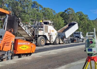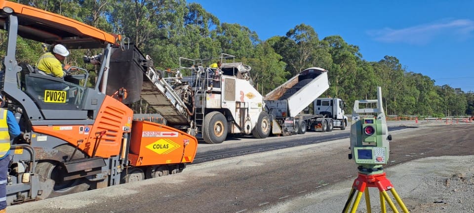 Road & Civil Surveys provides survey support for the John Holland Gamuda JV on the southern section, with 1–2 surveyors deployed on site. Scope covers earthworks set-out and as-built surveys, pavement and road set-out, drainage and utilities infrastructure, and interchange construction works at Black Hill, Tarro and Tomago. RCS supports the project control network and provides data calculations and EOM reporting. Night shift and road closure coverage supports live traffic interfaces where the new motorway ties into the existing M1 and surrounding road network.