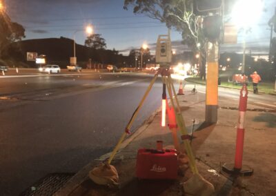 Road & Civil Surveys provided survey support throughout the Stage 2 construction program, with 1–2 surveyors deployed across the corridor. Scope included earthworks set-out and as-built surveys, pavement and road widening set-out, drainage and utilities infrastructure, and survey support for the upgrade of 10 signalised intersections. RCS established and maintained the project control network and provided data calculations and EOM reporting. Night shift coverage supported road closure works and intersection upgrades along a corridor carrying heavy daily traffic volumes.