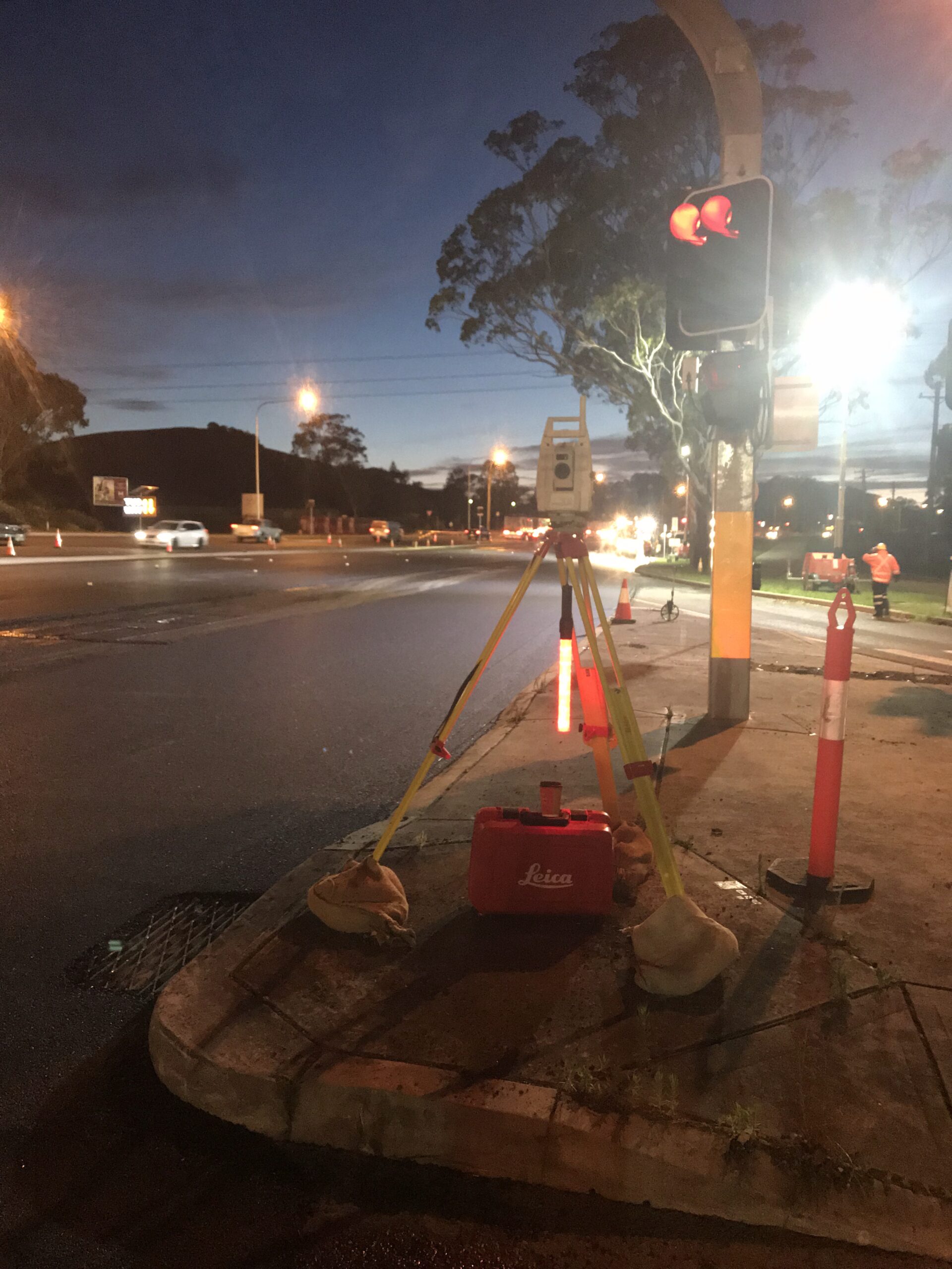 Narellan Road was the first project RCS delivered for Seymour Whyte — and the project that established a client relationship which has since carried through to the M4 Smart Motorway, Berry to Bomaderry, and beyond. Accurate set-out in tight live traffic conditions — particularly at signalised intersections where construction staging, traffic switches and lane configurations changed frequently — kept the widening program moving without survey hold-ups. Reliable night shift execution at intersection upgrades ensured critical closure windows were used productively. Despite a lean crew size, RCS kept pace with a fast-moving urban widening program by maintaining flexibility, responsiveness and consistent output.